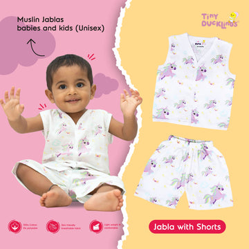 Keep your baby cool and comfy with our 100% cotton muslin jablas. Lightweight, breathable, and gentle on delicate skin, these soft tops are perfect for daily wear. Easy to slip on, they allow free movement and all-day comfort.