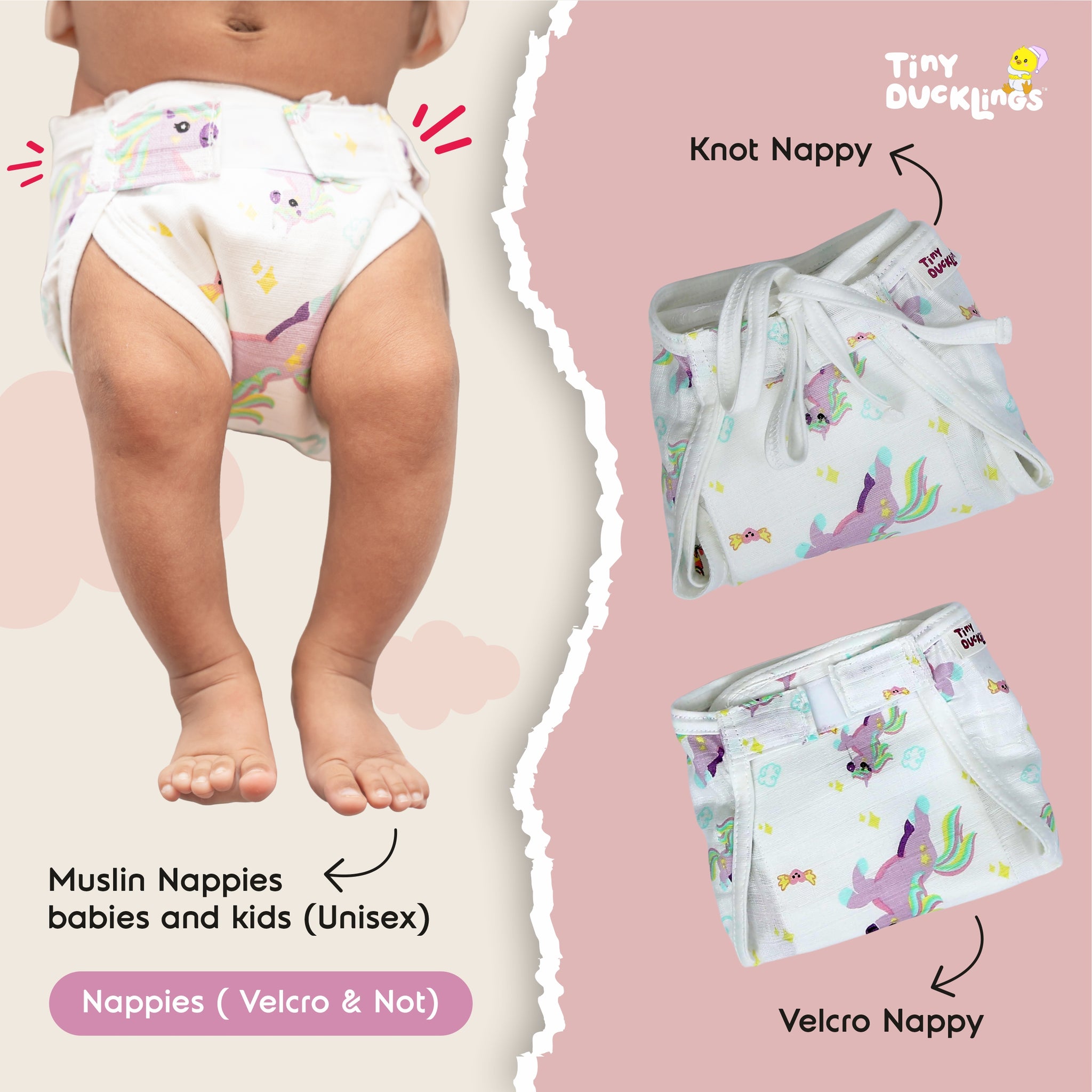 Gentle muslin nappies offer soft, breathable protection for your baby. Reusable, skin-friendly, and perfect for everyday comfort.