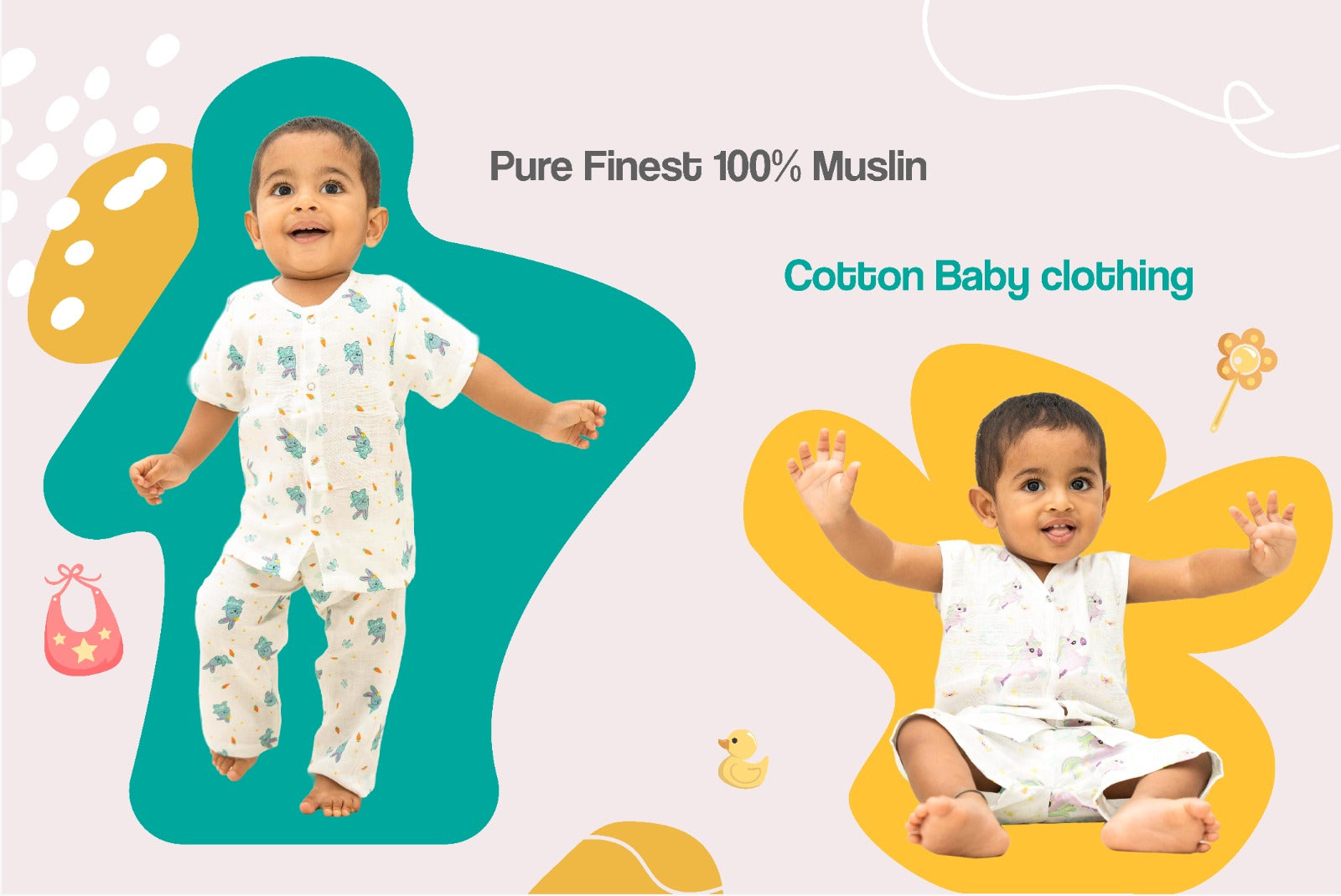 Keep your baby comfy and happy with our 100% cotton muslin clothes, specially designed for 6 to 12 months. Ultra-soft, breathable, and gentle on sensitive skin, they offer freedom to move, play, and nap in style—perfect for active little explorers!